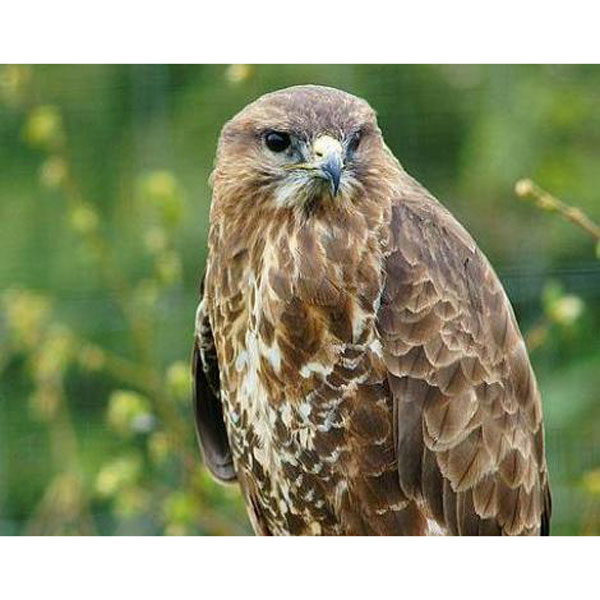 The common buzzard is a medium-to-large bird of prey which has a large range. A member of the genus Buteo, it is a member of the family Accipitridae. The species lives in most of Europe and extends its breeding range across the Palearctic as far as the Russian Far East , northwestern China (Tien Shan) and northwestern Mongolia Over much of its range, it is a year-round resident. However, buzzards from the colder parts of the Northern Hemisphere as well as those that breed in the eastern part of their range typically migrate south for the northern winter, many culminating their journey as far as South Africa. The common buzzard is an opportunistic predator that can take a wide variety of prey, but it feeds mostly on small mammals, especially rodents such as voles. It typically hunts from a perch. Like most accipitrid birds of prey, it builds a nest, typically in trees in this species, and is a devoted parent to a relatively small brood of young. The common buzzard appears to be the most common diurnal raptor in Europe, as estimates of its total global population run well into the millions.